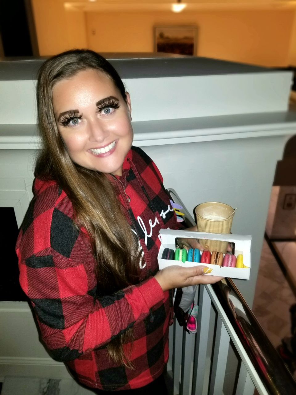 At the popup Holiday Sweet Shoppe, I tried eggnog with a choice of fireball for an extra kick. The Shoppe also, contained gingerbread houses, holiday treats, Yule log cakes, and desserts to tempt. There was a popup-themed Tree Lot bar in the atrium that had some delicious seasonal drink options as well. I tried the Home for the Holidays cocktail there featuring rum and clove. Both drinks and the macaroon cookies I had at these locations were delicious.