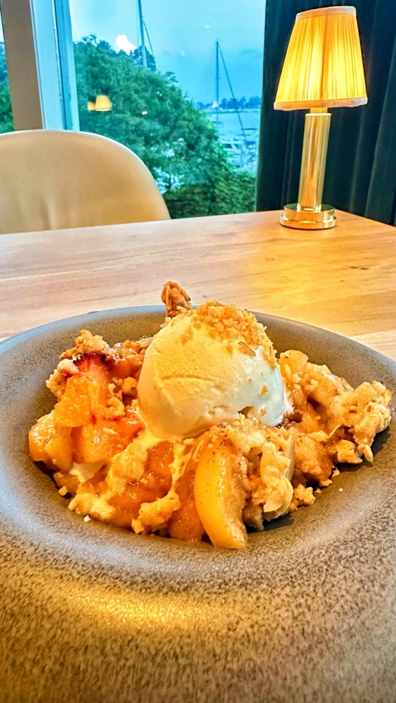 The unique thrill of landing on water was a captivating experience as was gliding to a stop and being greeted by the serene beauty of The Tides Inn, situated along the Virginia shoreline. As we disembarked to the charming dockside restaurant, Fish Hawk the excitement continued. Here, the atmosphere is effortlessly elegant, blending the tranquility of the waterfront with a touch of refined luxury. The restaurant, renowned for its delectable seafood and stunning views, was inviting and the perfect spot to unwind and savor a leisurely lunch by the water.