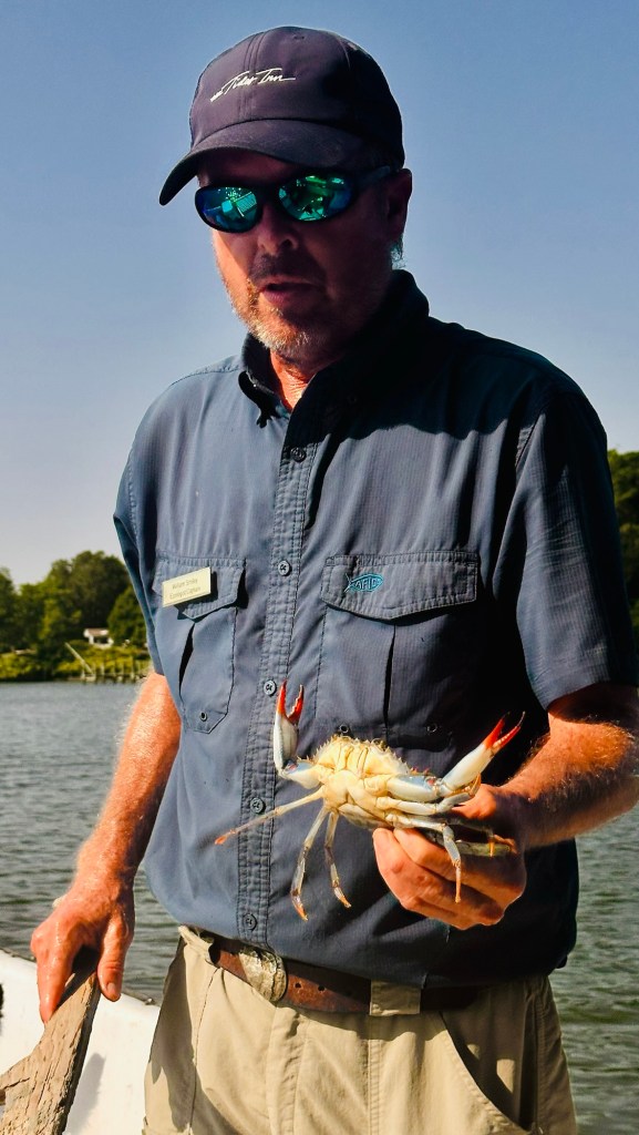 Imagine setting out on a boat trip, the sun shining overhead and the gentle waves lapping against the hull as you head into the serene waters of the Rappahannock River. The “Beautiful Swimmers” program with Ecologist Smiley, invites you to learn all about the fascinating world of crabs, from their habitat to their role in the local ecosystem. On your trip you’ll even have the chance to set a crab pot, gaining firsthand experience in the art of crabbing.